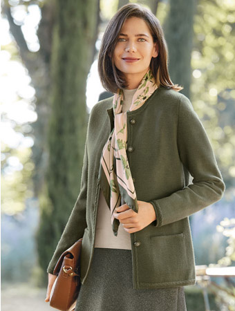Chic and comfortable, this Milano knit jacket is made from pure merino wool and features beautiful buttons and tubular trims.