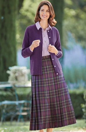 Made using pure wool fabric woven in the Scottish Borders, this wonderful skirt features all-round knife pleats, side back waistband elastication for optimum comfort and a full lining.