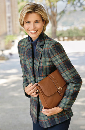 Made from pure wool, the striking check fabric has been woven in the Scottish Borders to create this beautiful double-breasted jacket, which features a rever collar, pockets and expert tailoring for a flattering silhouette.