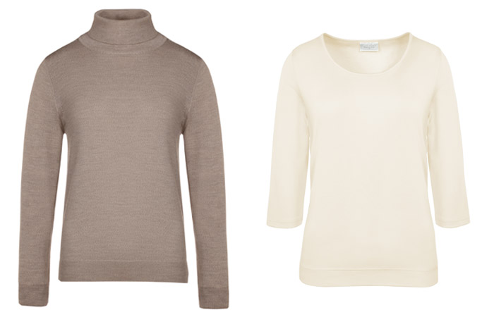 Choose your basics wisely. These lovely tops are in clever neutral tones that you can wear with anything. Choose the merino wool rollneck for cooler weather to wear under layers or the premium quality Pima cotton top for warmer months.