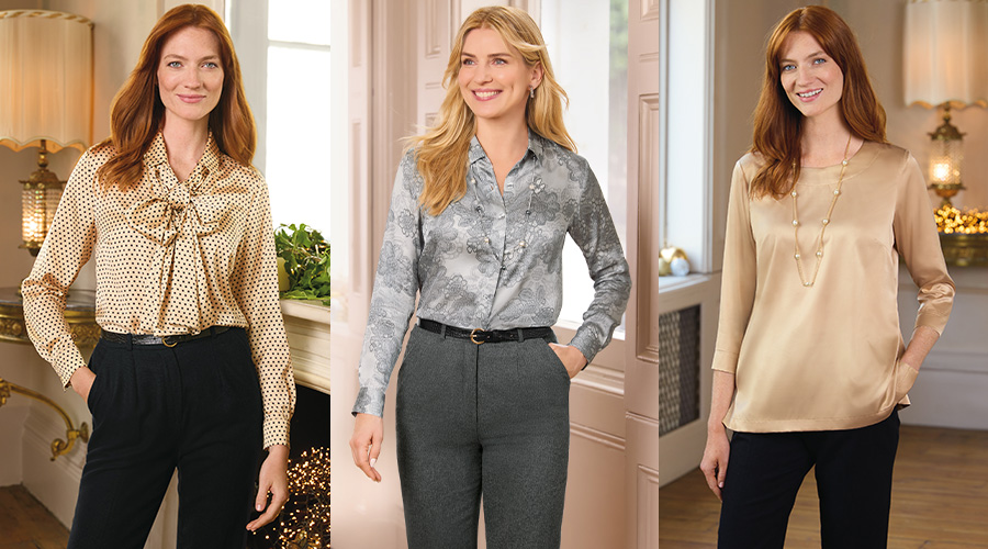 Satin is the fabric of the season, and giving your capsule wardrobe a festive flare are these sophisticated Satin Blouses and Tunics. Formed in an array of printed cloths from floral to spot, as well as a champagne-toned plain, each design ensures that you’re ready for each festive event in a traditional and timeless fashion. Team with our black or grey Classic Trousers to complete a refined, polished look.