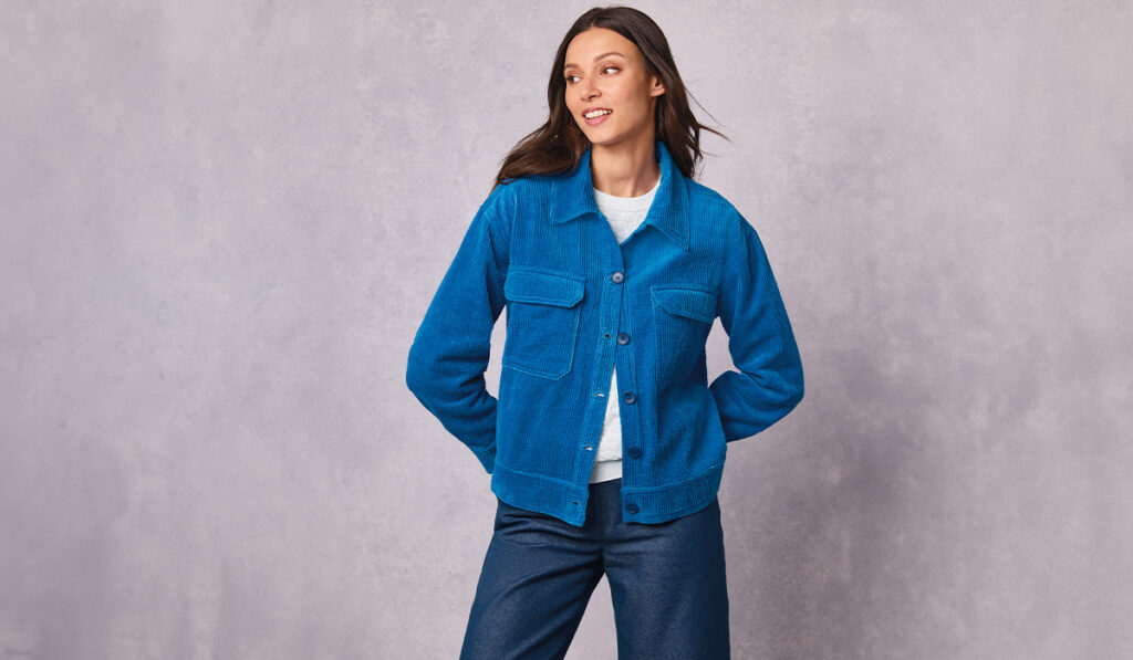 Ready to conquer those awkward in-between weather days? Discover this stunning cobalt Cord Jacket! The luxuriously soft, 100% cotton fabric drapes beautifully and feels truly soft against your skin, making it a year-round comfort piece. This isn't just any comfortable jacket...It boasts a touch of timeless refinement with a classic shirt collar and long sleeves with buttoned cuffs. Plus, the practical patch pockets with flaps add a touch of functionality (perfect for keeping your phone or essentials close at hand). This versatile jacket offers effortless style with a pop of texture thanks to the stunning cobalt hue. It's the perfect layering companion, ready to elevate your outfits throughout the coming season. Team this with our breathable Long-Sleeved Textured Top and denim blue Casual Trousers to build an effortlessly timeless outfit to reach for, year after year.