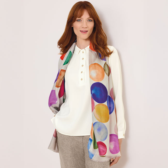 Add a hint of vintage glamour to your spring wardrobe with our versatile scarf collection. At Cotswold Collections, we understand the importance of a stylish scarf in creating a polished look. Our new scarves are carefully chosen to complement both our latest designs and your existing favourites. If you love the on-trend style of spots, our cheerful Spot Scarf is the ideal choice. Its vibrant colours, reflecting the brighter tones of spring, make it easy to inject a pop of colour into any outfit. Simply drape it around your neck for an instant style update.