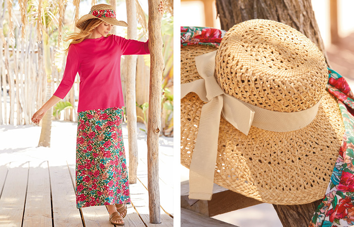 “I love “tying” a look together! Try wrapping a scarf around a hat to create a care-free coordinated summer accessory, for an example see our peony scarf and Italian straw hat combination”.