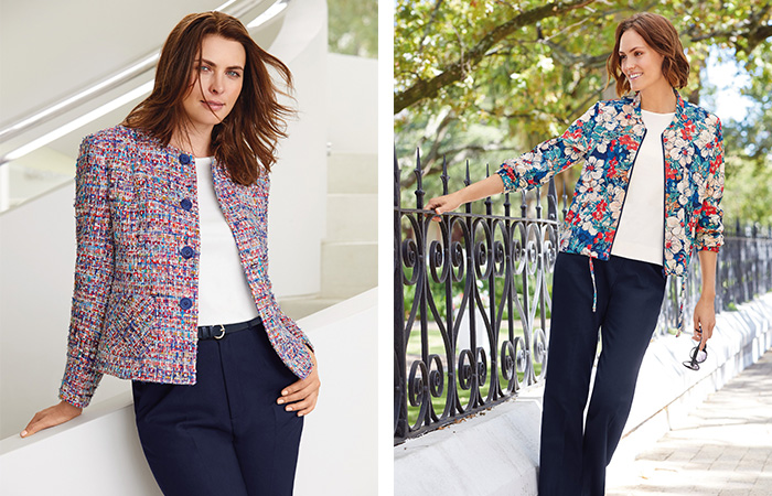 “My best style tip is to ensure you have your ‘essentials’ that you can dress up or pair down with ease! Our navy trousers are definitely one of those key pieces, for a smart look pair with our beautiful multi-coloured tweed jacket or for a softer appearance, with our new style blouson jacket”.