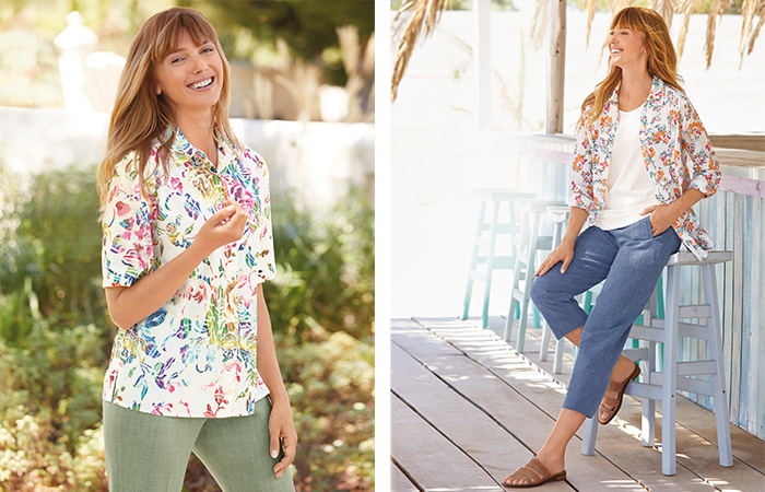 “All of our blouses in this collection look great on their own buttoned up, tucked in or out. But you can add versatility to a blouse (as well as warmth) by wearing a tshirt underneath”.