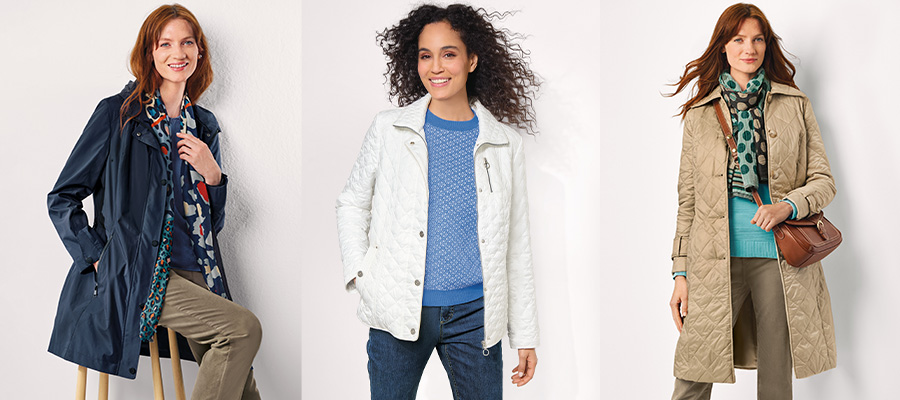 How does your new coat collection address unpredictable transitional weather? Our new collection of coats is designed to prepare you for unpredictable weather by offering quilted styles that provide warmth without adding bulk, and a raincoat for embracing all weather conditions.