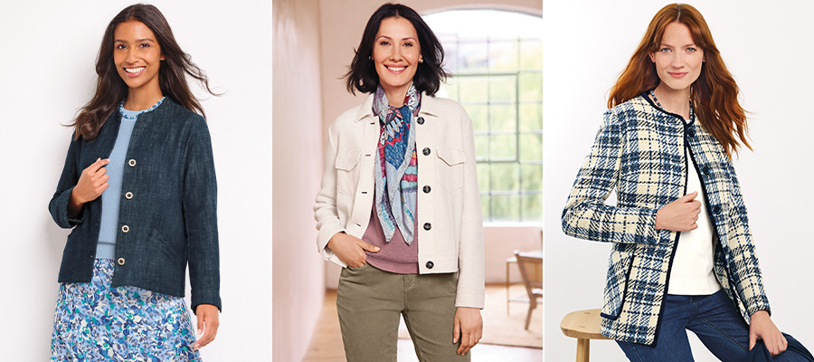 As the summer temperatures begin to drop, it's important to have that extra layer ready and waiting. Our latest collection of transitional jackets is the key to effortless style. We've created an array of quality designs that are easily mixed and matched with your new and existing wardrobe. Shop our latest favourites, including a classic wool blend jacket, along with our versatile Casual Jacket, both bringing elegance and practicality to your new season wardrobe.
