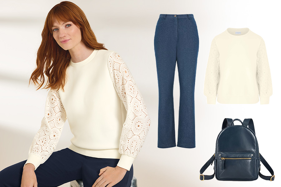 Spring is in full bloom, and we encourage you to explore the wonders of nature. Visit your local gardens, parks, and walking paths to experience the season at its best. From blossoming fruit trees to vibrant bulbs, nature’s renewal is a feast for the senses. For comfortable exploration, we recommend our Broderie Anglaise Sweatshirt. This wonderful transitional piece can be layered on chillier days or worn alone when the weather is milder. The intricate sleeve details not only look beautiful but also provide breathability for your arms. Team it with our Casual Trousers for a classic everyday look.