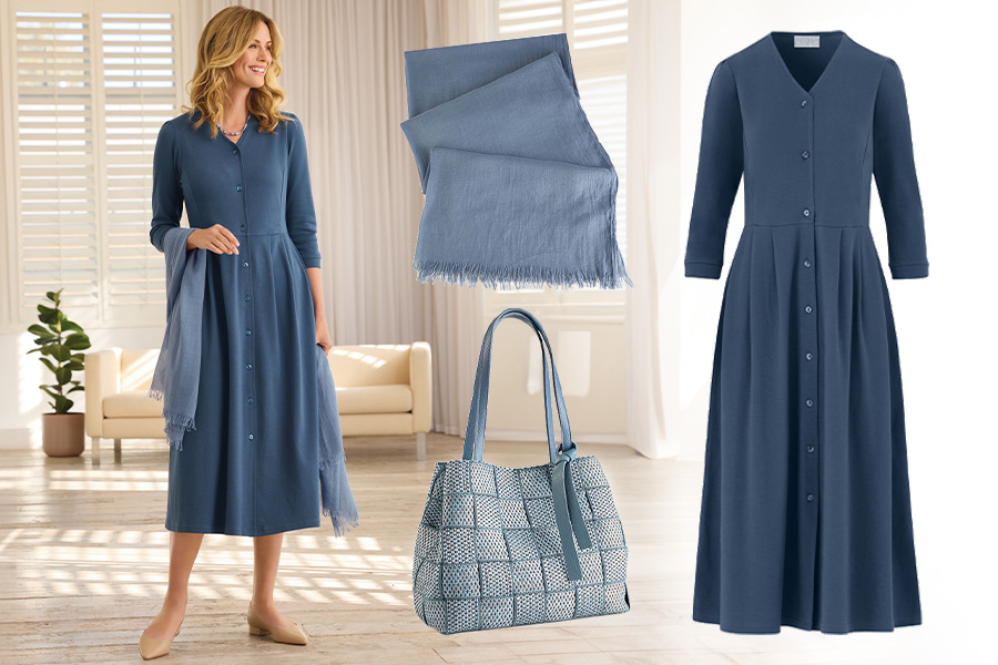 As the weather improves, our calendars fill with weddings, birthdays, christenings, and anniversaries. A special occasion calls for a special outfit, and our Jersey Button-Through Dress is a winner! This breathable 100% cotton dress, in a versatile tone, is refreshing and perfect for any celebration. Whether it’s “something blue” or a celebration of a new arrival, you’ll stay comfortable all day long thanks to its three-quarter sleeves, gentle skirt shaping, and flattering waist tucks.