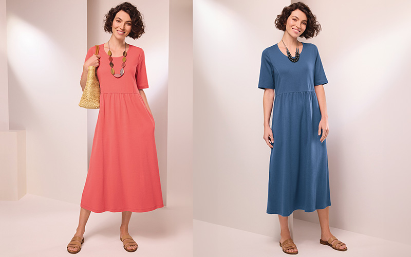 This dress offers true versatility. The easy-to-wear jersey fabric and comfortable cut make it ideal for anything from relaxing in the garden to catching up with friends. The princess seams add a touch of flattering detail, while the side pockets offer practicality. Dress it up with our Wooden Necklace and accessorise with your favourite handbag.
