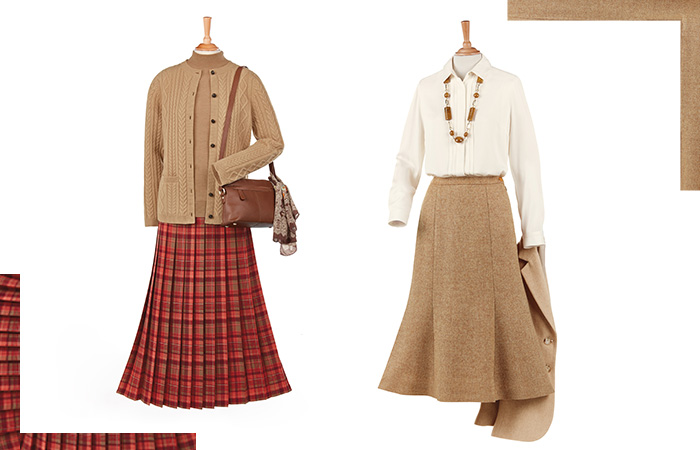 Build your classic wardrobe with these classic pieces, made with premium quality fabrics including tweed panel, Donegal and checked pleated skirts; suede slippers and herringbone jacket. These stunning pieces are perfect for when you are wanting a traditional and tailored look that will never go out of fashion.
