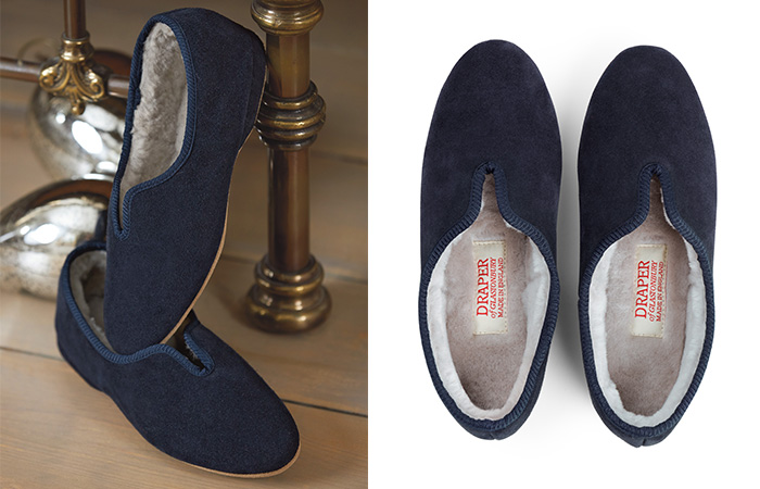 These luxurious suede slippers are handmade by a family-owned shoe company in the traditional shoe-making county of Somerset. These real suede slippers have a suede sole and pale grey sheepskin linings.