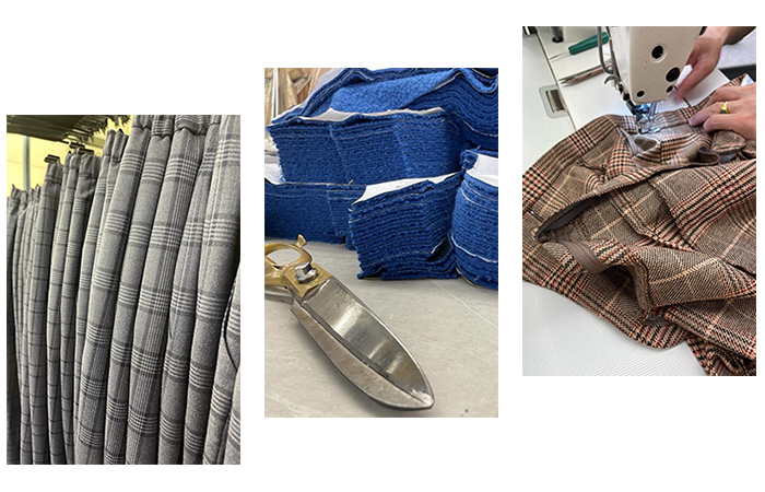 We have some of our beautiful garments created in London, England too, and these photographs showcase a preview of the process behind how some of our favourite pieces are made. From railings of our Checked Trousers to precise cuttings of Bouclé Fabrics, this wide team of talented craftsmen really take care in making sure quality is key within our garments.